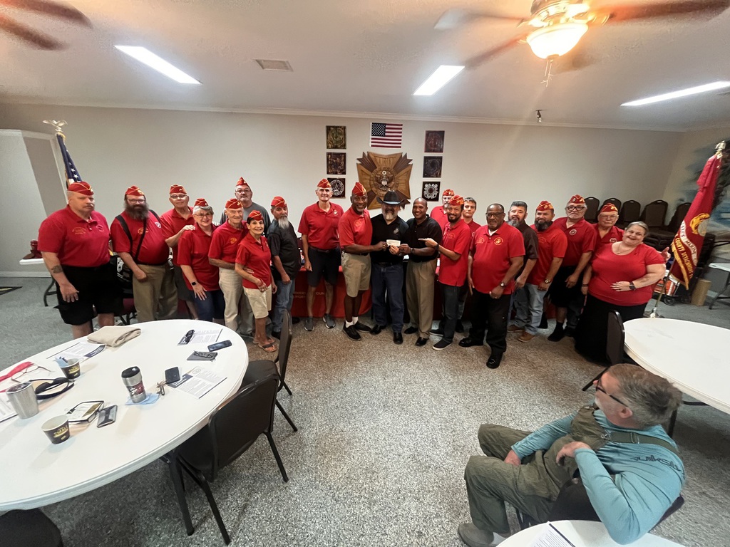 Former Marine Corps Drill Instructors, members of MCL Det 1057 and VFW Post 4089, stand together in a group photo, marking the end of the annual event.